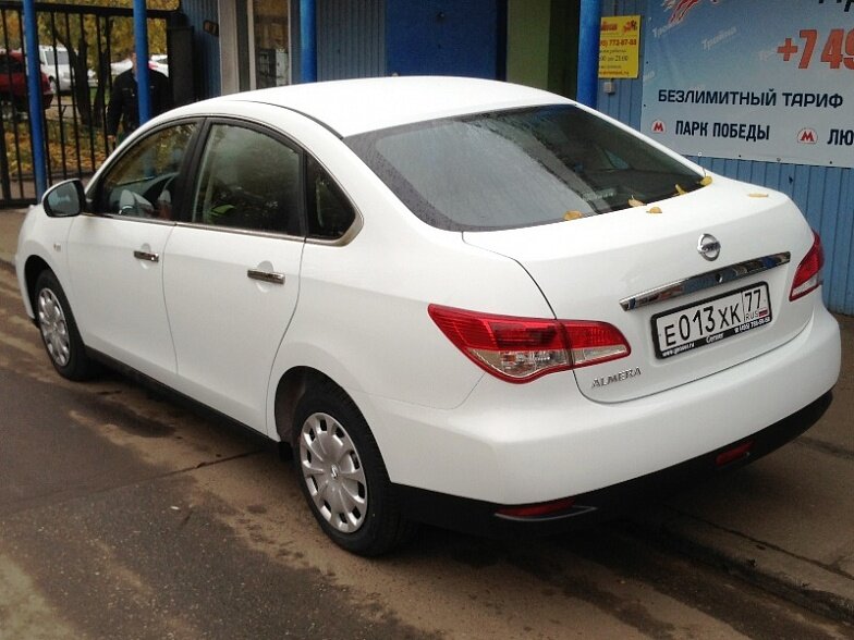 Московская прокатная компания «АрендаАвто-блт» предлагает взять в аренду Nissan Almera IV MT белого цвета с механической коробкой передач по низкой цене.